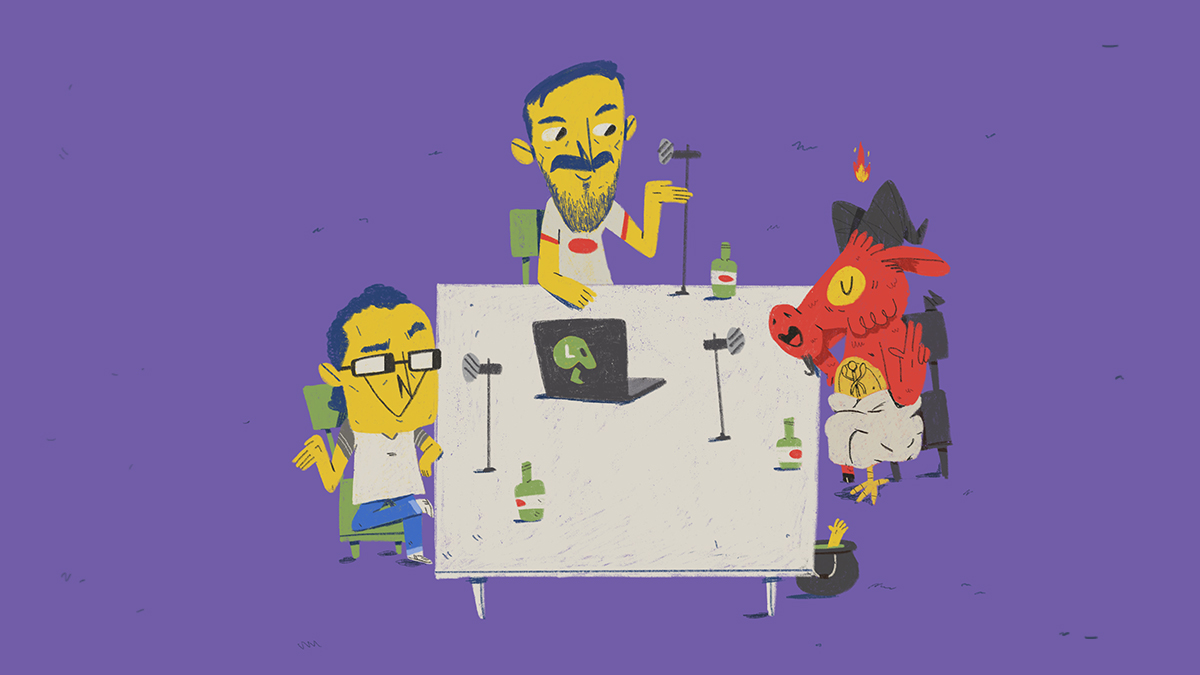 I like to work listening to podcast, so I decided to draw how I imagine some of my favorite ones are recorded.